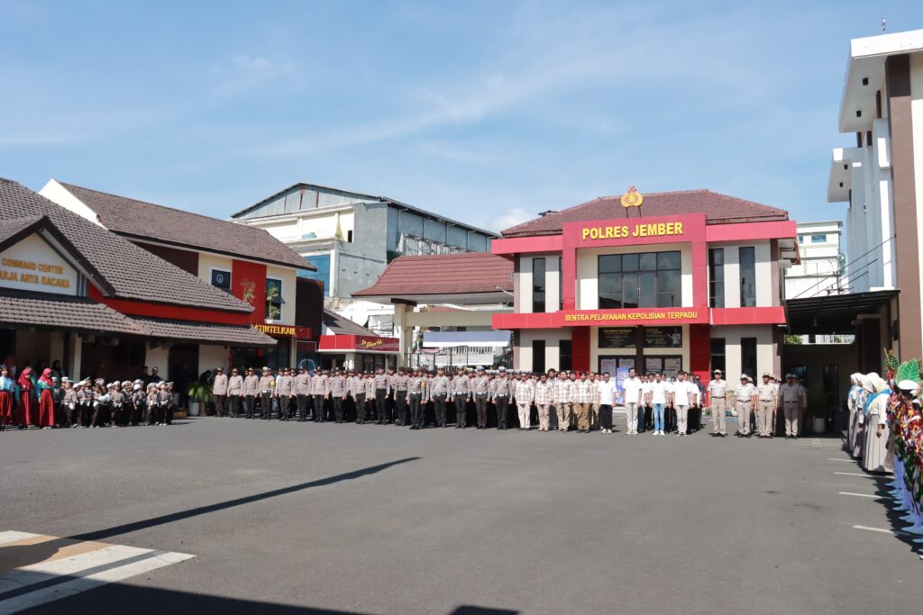 Hadir pula Kapolres Jember AKBP Bayu Pratama Gubunagi, Wakapolres Kompol Jimmy Heryanto Hasiholan, serta Pejabat Utama (PJU) Polres Jember. Uniknya, apel pagi kali ini diikuti oleh siswa-siswa dari TK, SD, dan SMP di wilayah Kabupaten Jember. Rabu (16/10/2024)