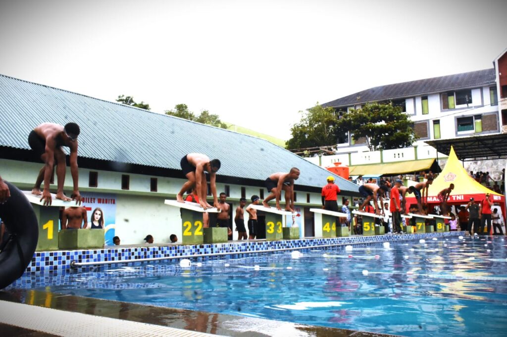 [ MANOKWARI ] – Suasana penuh semangat mewarnai gelaran lomba renang yang diadakan pertama kali di Papua Barat dimana kegiatan ini diselenggarakan dalam rangka memperingati Hari Ulang Tahun ke 8 Kodam XVIII/Kasuari.