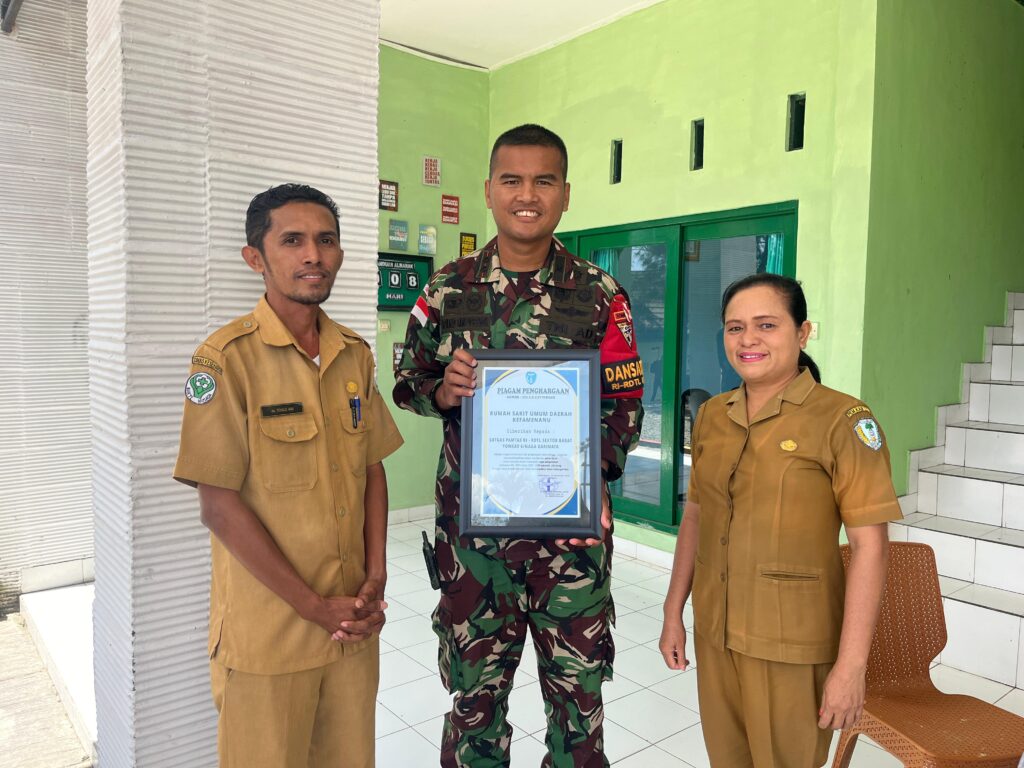 Eban, NTT – Penghargaan diberikan kepada Satgas Yonkav 6/Naga Karimata. Perwakilan RSUD Kefamenanu, Ibu Amelia Cuni Mooy, S.KM, M.PH, memberikan piagam penghargaan kepada Dansatgas Yonkav 6/Naga Karimata, Letkol Kav Ronald Tampubolon, S.H., M.Han., di Mako Satgas Yonkav 6/Naga Karimata yang berlokasi di Desa Eban., Kec. Miomaffo Barat, Kab. TTU, Prov. NTT. (10/9/24)