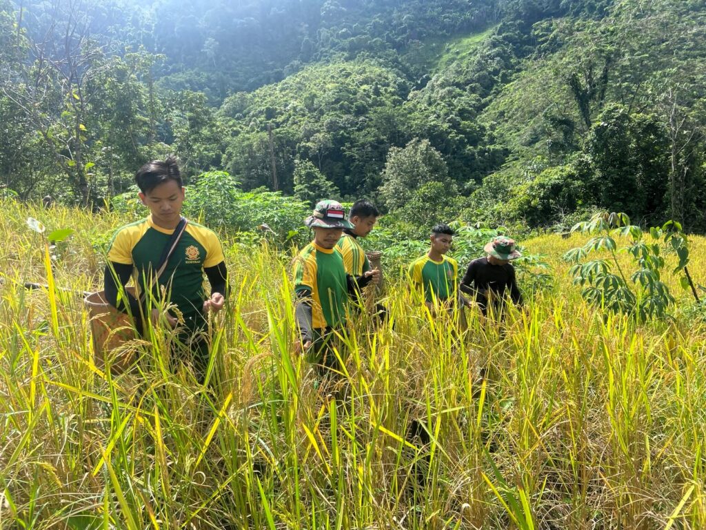 Nunukan, – 25 Februari 2025 – Satgas Pamtas Yonarmed 11 Kostrad Pos Lumbis bersama warga Desa Duyan Kec Lumbis Hulu Kab Nunukan melaksanakan panen padi gunung secara gotong royong di Sentra Ketahanan Pangan desa binaan Pos Lumbis, Kegiatan ini bertujuan untuk memperkuat kemanunggalan TNI-Rakyat serta mendukung ketahanan pangan di wilayah perbatasan.