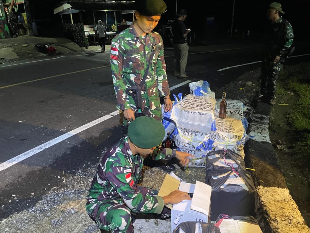 Nunukan, Kaltara – Satgas Pamtas Yonarmed 11 Kostrad terus menunjukkan komitmen kuat dalam menjaga perbatasan Indonesia-Malaysia. Kali ini, personel Pos Bukit Keramat berhasil menggagalkan penyelundupan 30 dus atau setara 360 botol minuman keras (miras) ilegal merek Black Jack’s dan R&B Likeur dalam operasi sweeping kendaraan yang melintas di Desa Bambangan, Kecamatan Sebatik Barat, Kabupaten Nunukan, Kalimantan Utara. Selasa (22/10/2024)