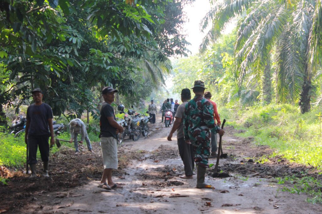 Terik matahari dan medan yang menantang tidak menyurutkan semangat mereka untuk mewujudkan impian warga memiliki jalan yang layak.