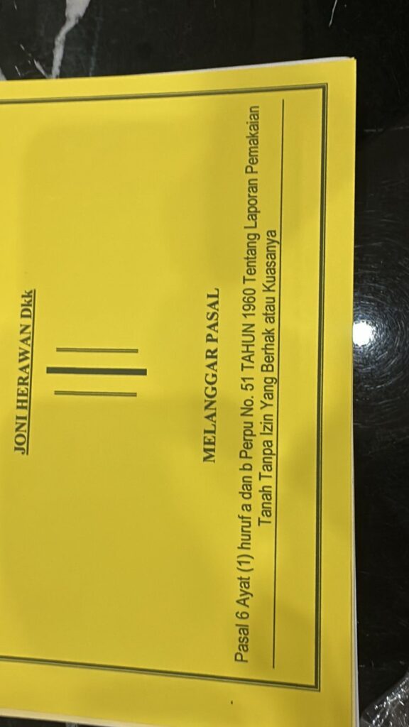 Dugaan pelanggaran tersebut diduga dilakukan oleh ahli waris Jupri al Umatun dan Maryam Hosna, yakni Yadi, Imam, dan Joni, yang saat ini menggunakan objek tanah tersebut sebagai bengkel tanpa izin pemilik sah.