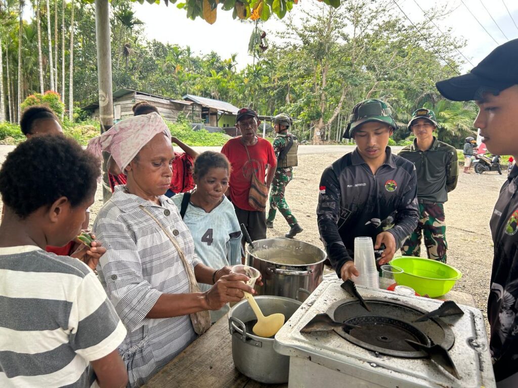 [ KEEROM ] – Meningkatkan kreativitas masyarakat khususnya mama-mama di Papua, personel Pos Wembi Satgas Yonif 131/BRS mengajarkan cara membuat makanan olahan berupa bubur sumsum di Kampung Piawi, Distrik Mannem, Prov. Papua, Kamis (06/02/2025).